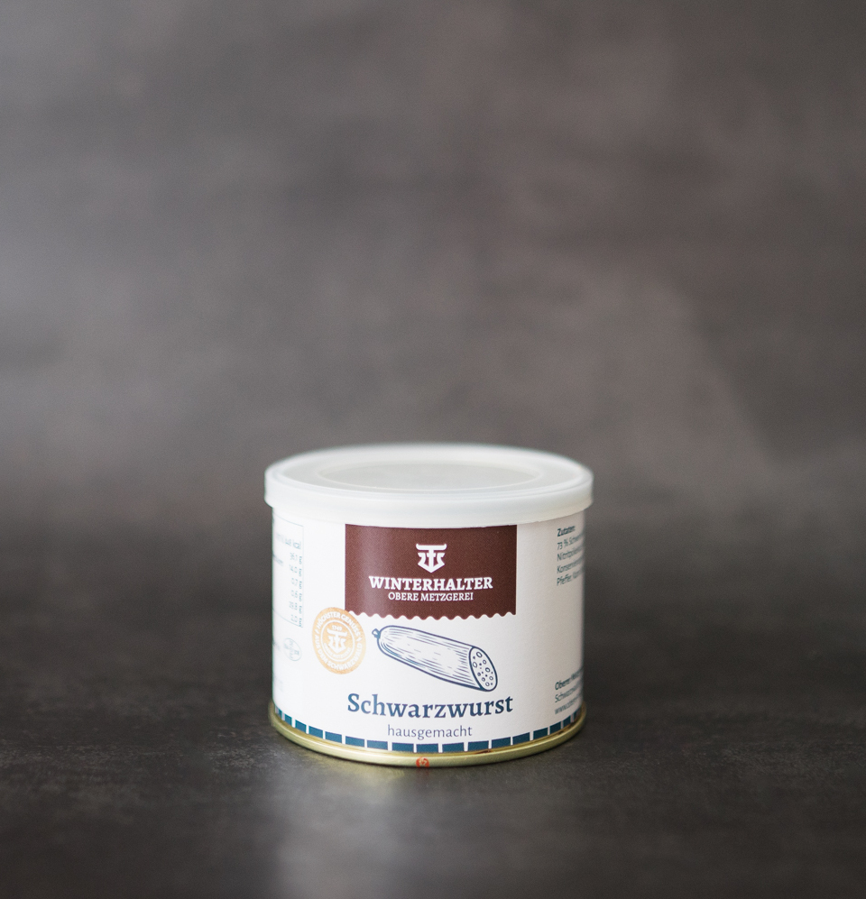 Produktinformationen "Hausmacher Schwarzwurst in der Dose, 185gr."