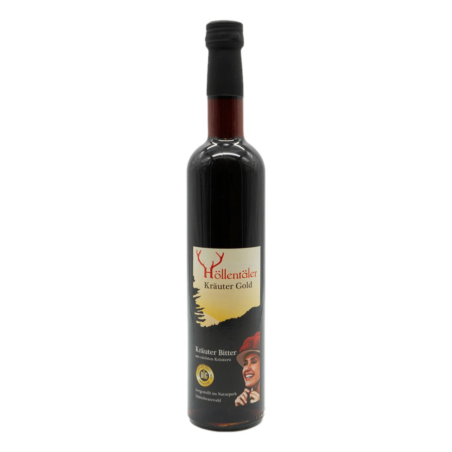 Bei der Herstellung unseres Höllentäler Kräuter Gold wenden wir die traditionellen Methoden Mazeration und Destillation an. Wir halten uns streng an eine alt bewährte Rezeptur, die aus über 30 erlesenen Kräutern besteht und versiegelt in einem Pfarrhaus mit klösterlicher Vergangenheit gefunden wurde.