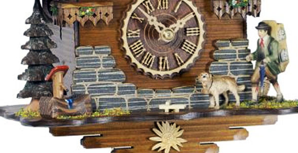 Mechanische Kuckucksuhr mit Kettenzugwerk. Schlägt zur vollen und zur halben Stunde.