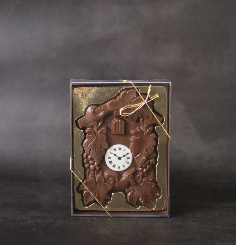 Produktinformationen "Kuckucksuhr aus Vollmilchschokolade, 80gr."