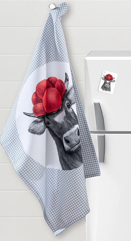 Küchentuch mit Magnet "Kuh mit Bollenhut"