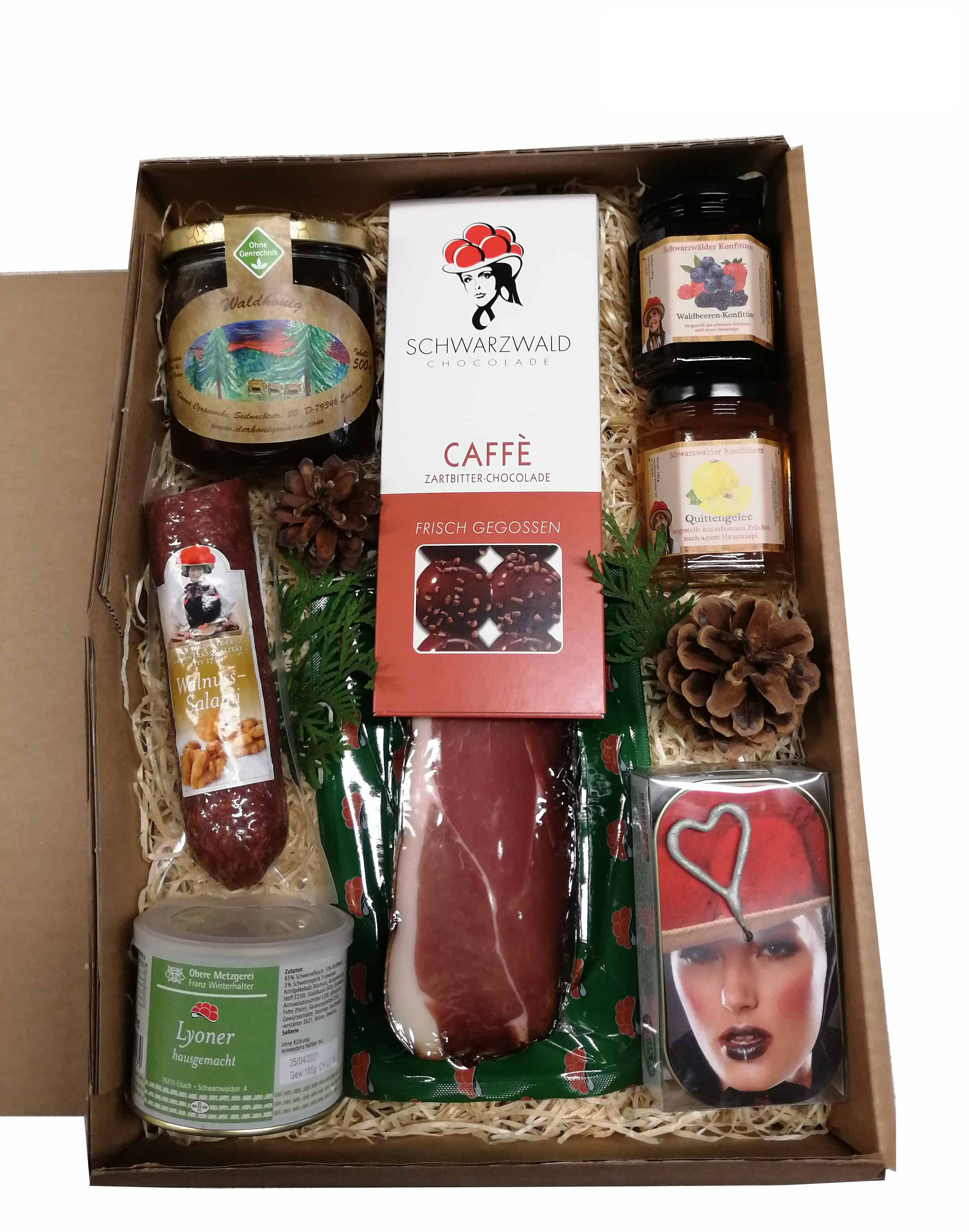 Die jeweiligen Geschenkboxen beinhalten folgende feine Schwarzwälder Spezialitäten: