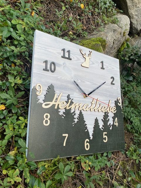 Das bearbeitete Schwarzwaldbrett wurde mit einer leisen Quarzuhr versehen.